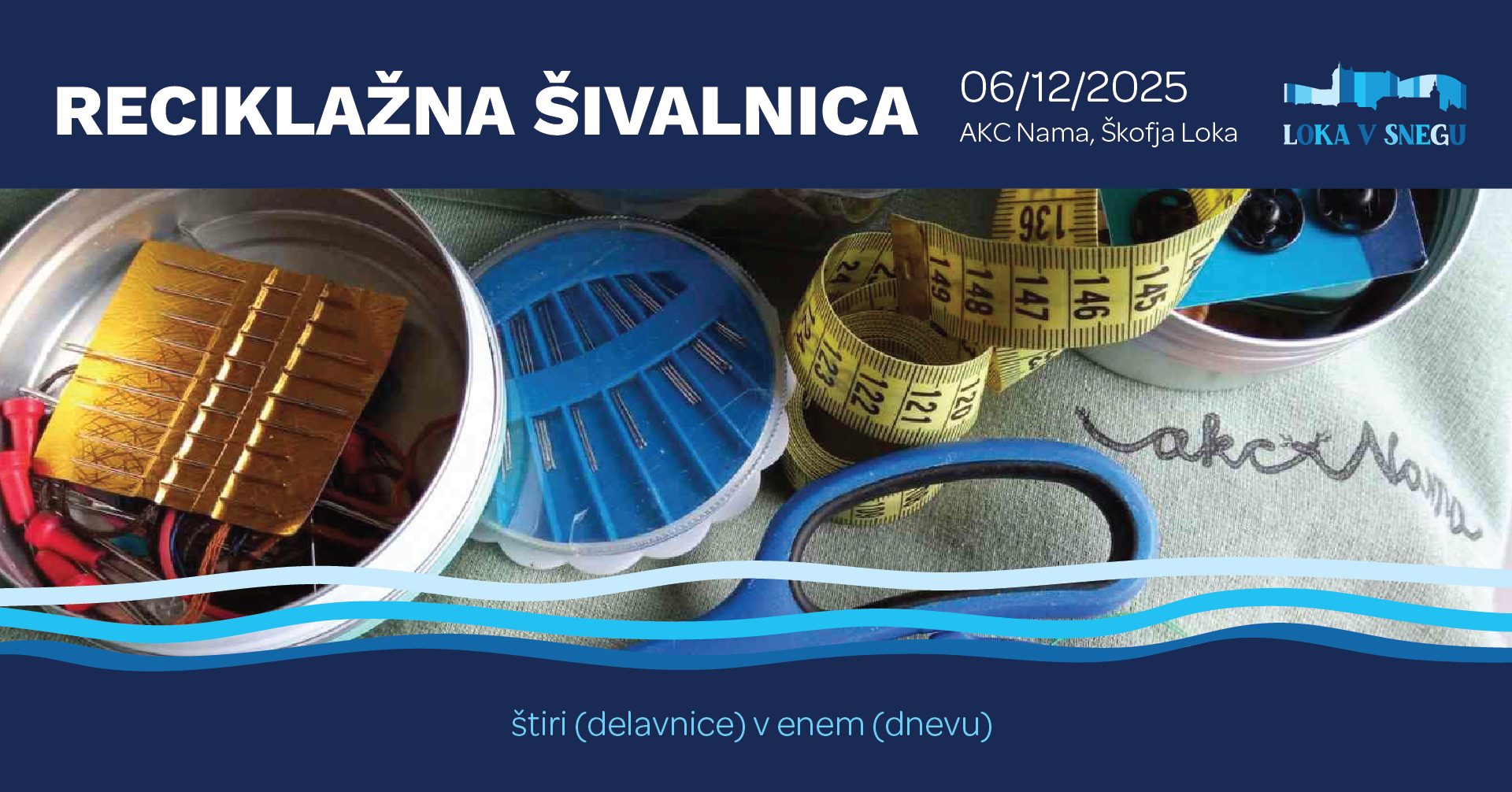 Od 10. do 16. ure bo prvo soboto v decembru potekal ustvarjalen dan namenjen predelovanju in recikliranju oblačil in tekstila. Hkrati bodo vseh 6 ur potekale 4 različne delavnice za odrasle. V AKC Nama, v 1. nadstropju nekdanje veleblagovnice, bodo postavljene 4 postaje, vsaka namenjena svoji delavnici: